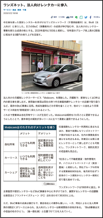2020-01-31 【メディア掲載】ワンズレンタカー新サービス「Mobicom」