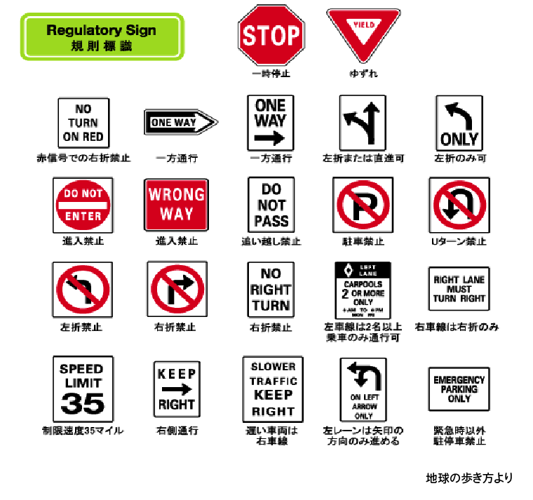 ※「NO TURN ON RED」では青を待ってから。