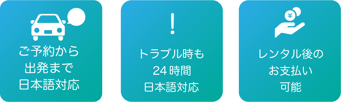 日本企業のレンタカーなので海外に不慣れでも安心してご利用いただけます。